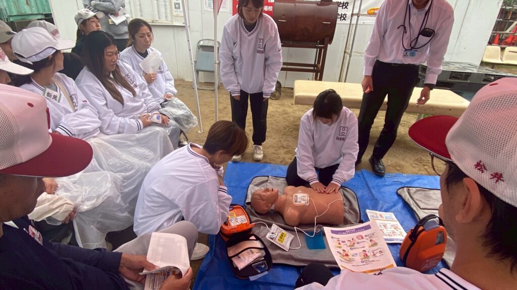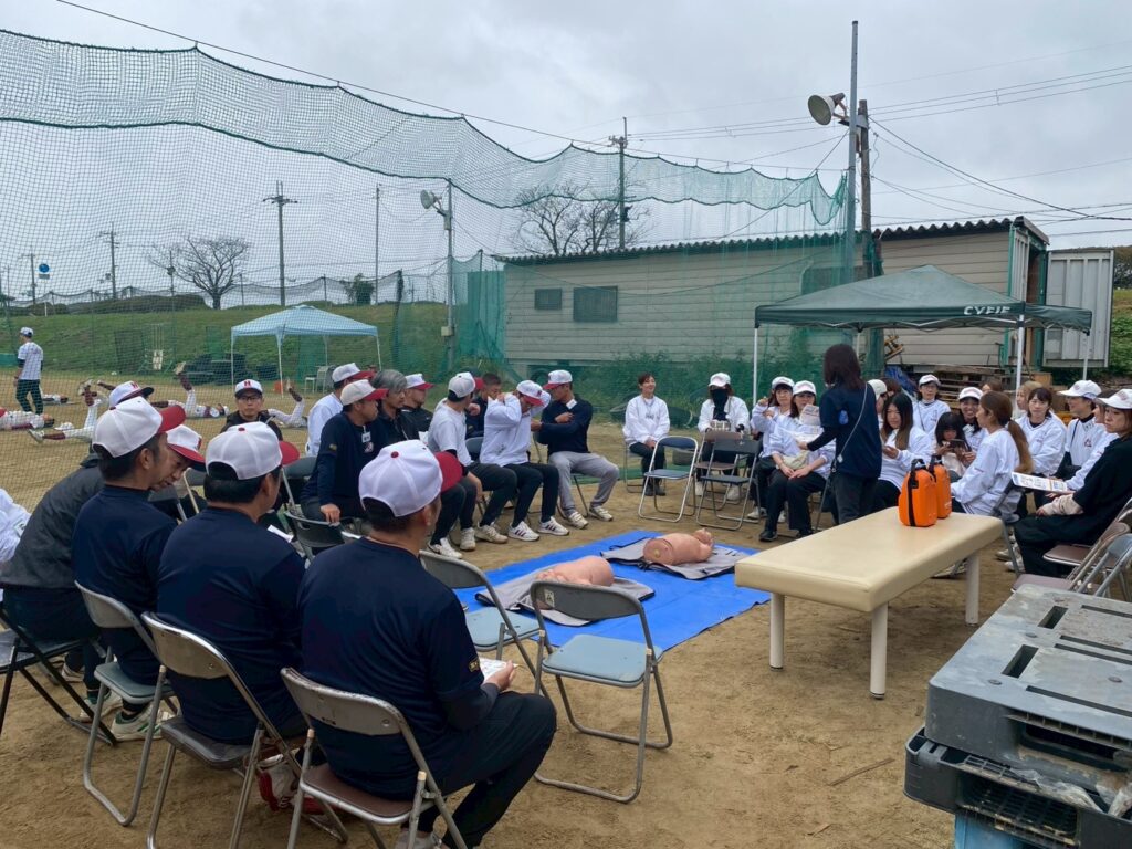 10月26日(日)  羽曳野ボーイズでは、万が一の緊急時に備えて、AED(自動体外式除細動器)講習会実施しました。  当日は保護者、指導者あわせて40名が参加し心肺蘇生法やAEDの使い方を学びました。  講習では人形を使った胸骨圧迫の練習や、実際のAED操作体験も行われ、参加者は真剣な表情で取り組んでいました。最後には 「いざという時に落ち着いて対応できるようになりたい」 「命を守る大切さを実感した」 といった声も聞かれました。講習会を開いてくださった国際セーフティー株式会社様、ありがとうございました。