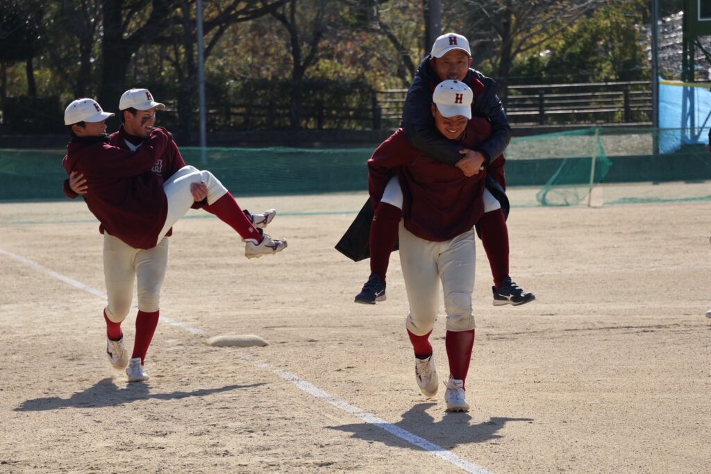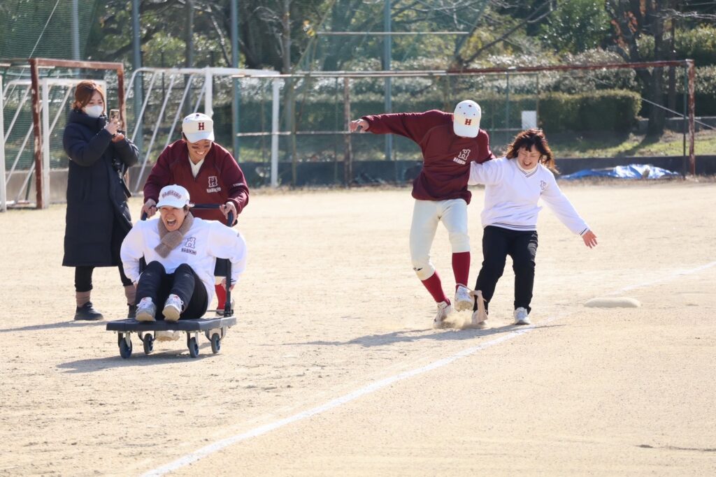 ガチンコ対決では、これまで共に練習してきた先輩・後輩が真剣勝負で対戦。3年生は意地とプライドをかけたプレーを、2年生は挑戦者として全力のプレーを見せ、白熱した試合となりました。仲間だからこそ生まれる緊張感あるプレーの連続に、スタンドからは大きな声援と拍手が送られました。 続いて行われたミニ運動会では、父兄も一緒に競技に参加し、笑顔と歓声があふれる時間となりました。 親子で力を合わせる場面や、思わず笑いが起こる場面も多く、普段の練習や試合とはひと味違った、温かく和やかな雰囲気に包まれました。真剣勝負とふれあいの時間、どちらも楽しめた午前の部は、卒団イベントにふさわしい、心に残るひとときとなりました。
